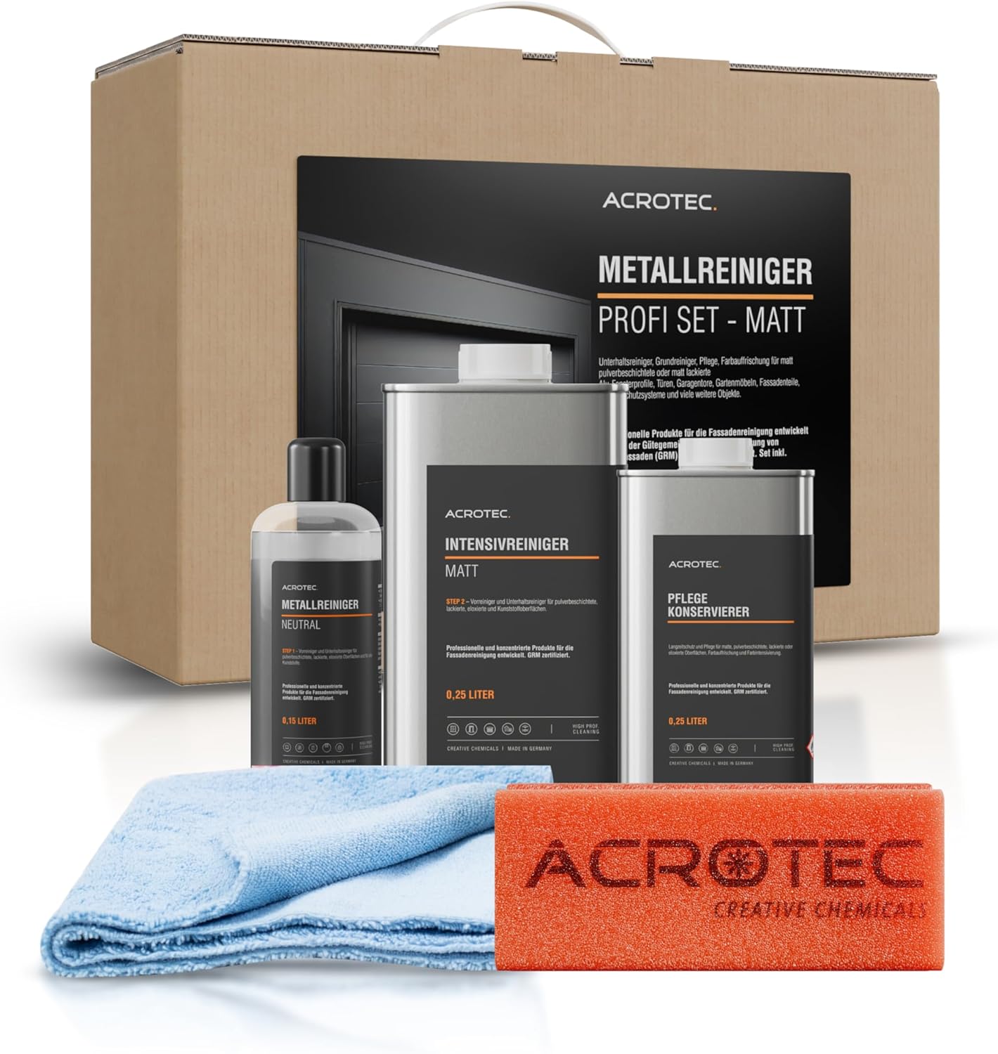 To enable you to clean your garage door safely and effectively, AcroTec® offers professional kits tailored to the type of surface – now also conveniently available on Amazon: